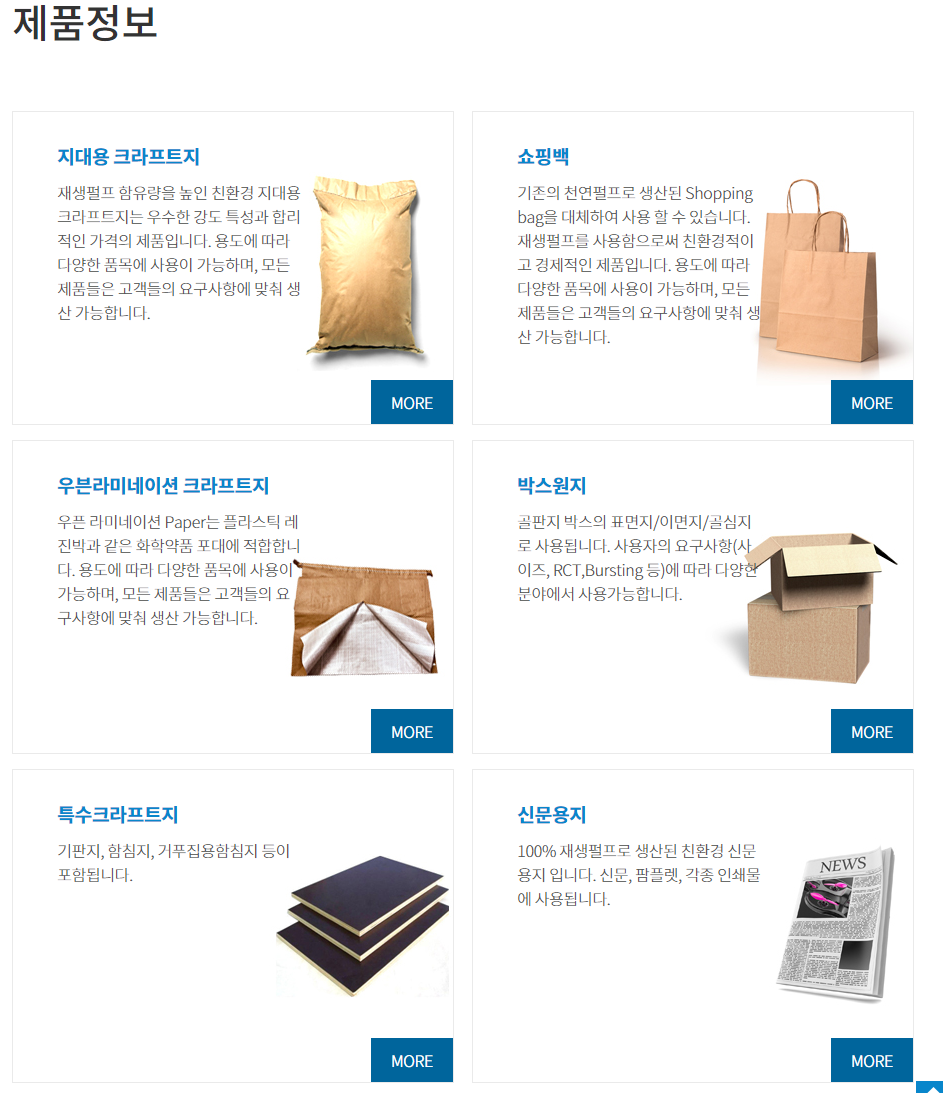 페이퍼코리아 홈페이지에서 제공하고있는 제품 정보는 다음 사진과 같습니다.