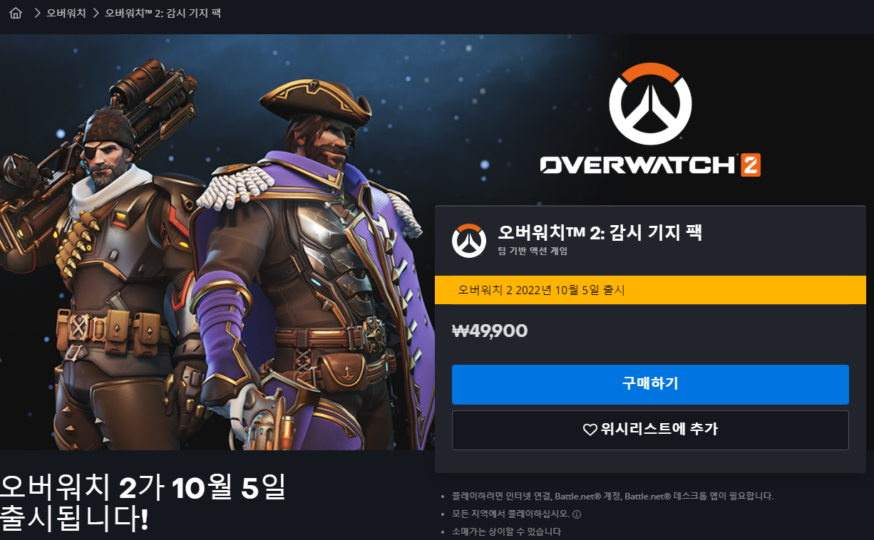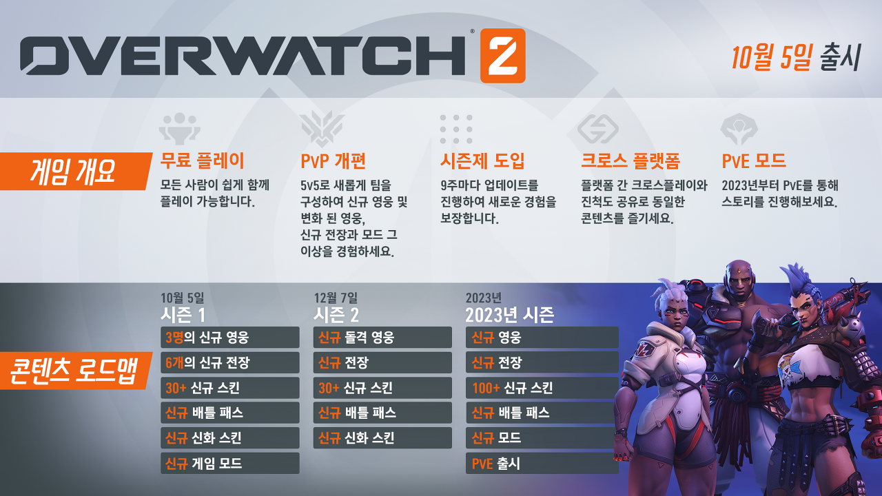 오버워치 2는 10월 5일 오전 4시부터 서비스가 시작됩니다.