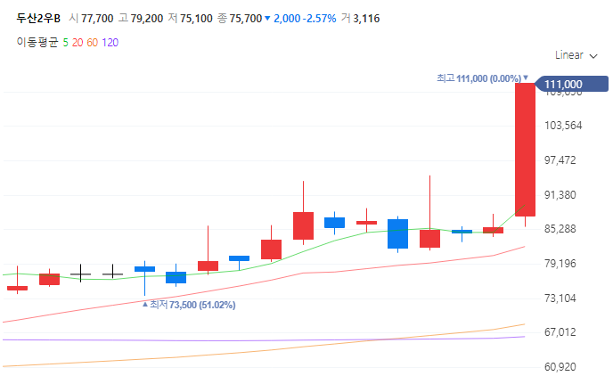 두산2우B도 원전 관련주로 상승했습니다!
