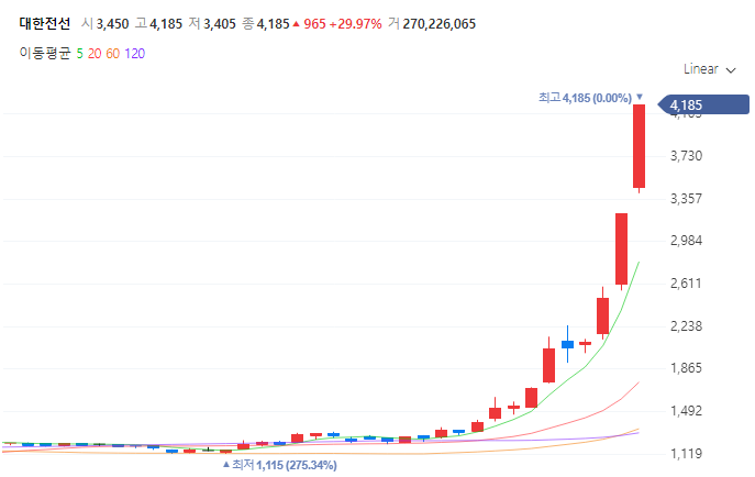 대한전선은 코스피 200 편입 기대감에 급등하고있으며,