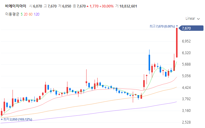 비에이치아이는 이번에 급등📈하고있는 원전 테마 관련주로,