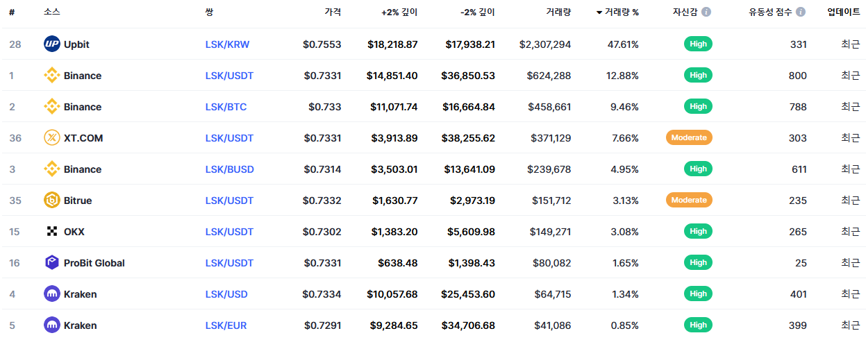 절반에 가까운 양이 업비트에서 거래되고 있네요. 바이낸스에서도 20%이상이 거래되고 있는 것을 확인하실 수 있습니다.