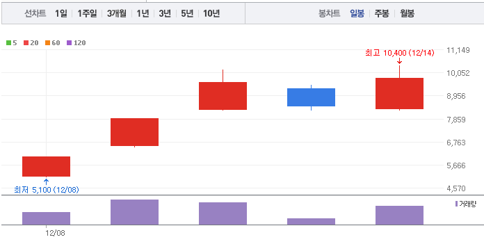 신규주는 차트 분석이 사실상 불가능하지만 상장 이후 계속 급등하고 있습니다. 핑거스토리가 이렇게 급등하고 있는 이유는 투자종목 지정 해제가 가장 큰 것으로 알려졌습니다. 전세계적으로 웹툰 시장은 게속 크게 커지고 있는데, 핑거스토리의 향후 전망이 기대되네요.