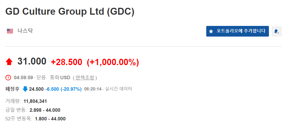 GDC 주가 전망 차트분석 | 하루만에 1,000% 급등