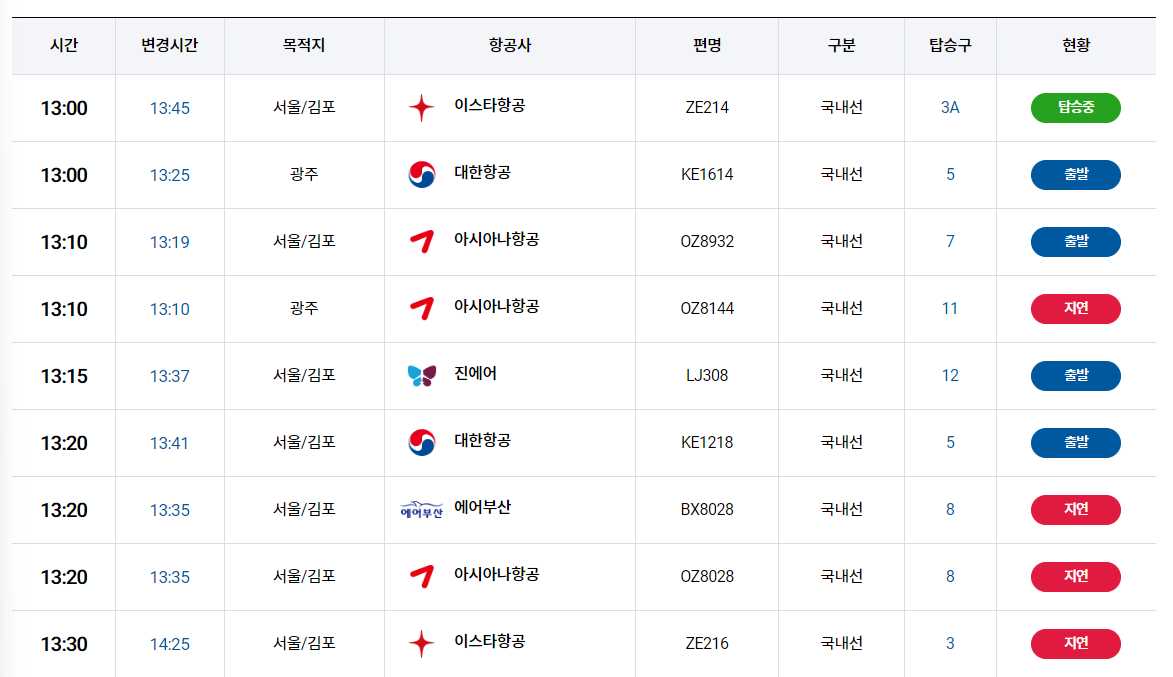 출발/도착안내 < 운항정보 | 제주국제공항(국문) (airport.co.kr)