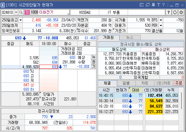 이화전기·이아이디·이트론 시간외 하한가 원인 분석