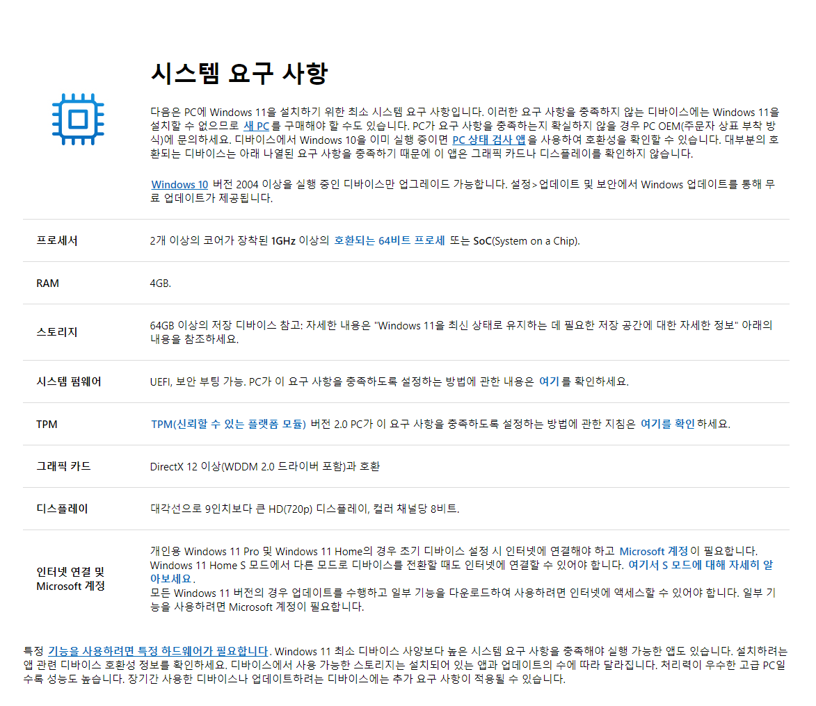 윈도우 11 사양