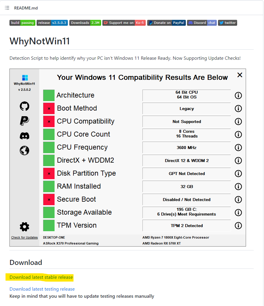 GitHub - rcmaehl/WhyNotWin11: Detection Script to help identify why your PC is not Windows 11 Release Ready. Now Supporting Upda