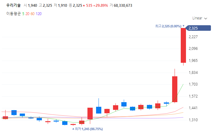 우리기술도 위 종목들과 같이 원자력 관련주로 상승하였습니다.