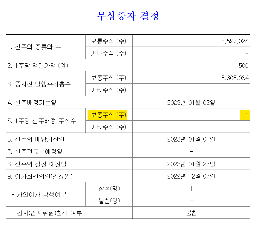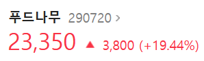푸드나무가 100% 무상증자를 결정했다고 12월 7일 전자공시시스템에 공시되었습니다. 이에 푸드나무의 주가는 '급등'하여 장중 상한가를 기록하고 전일대비 19.44% 상승한 23,350원에 거래를 마쳤습니다.